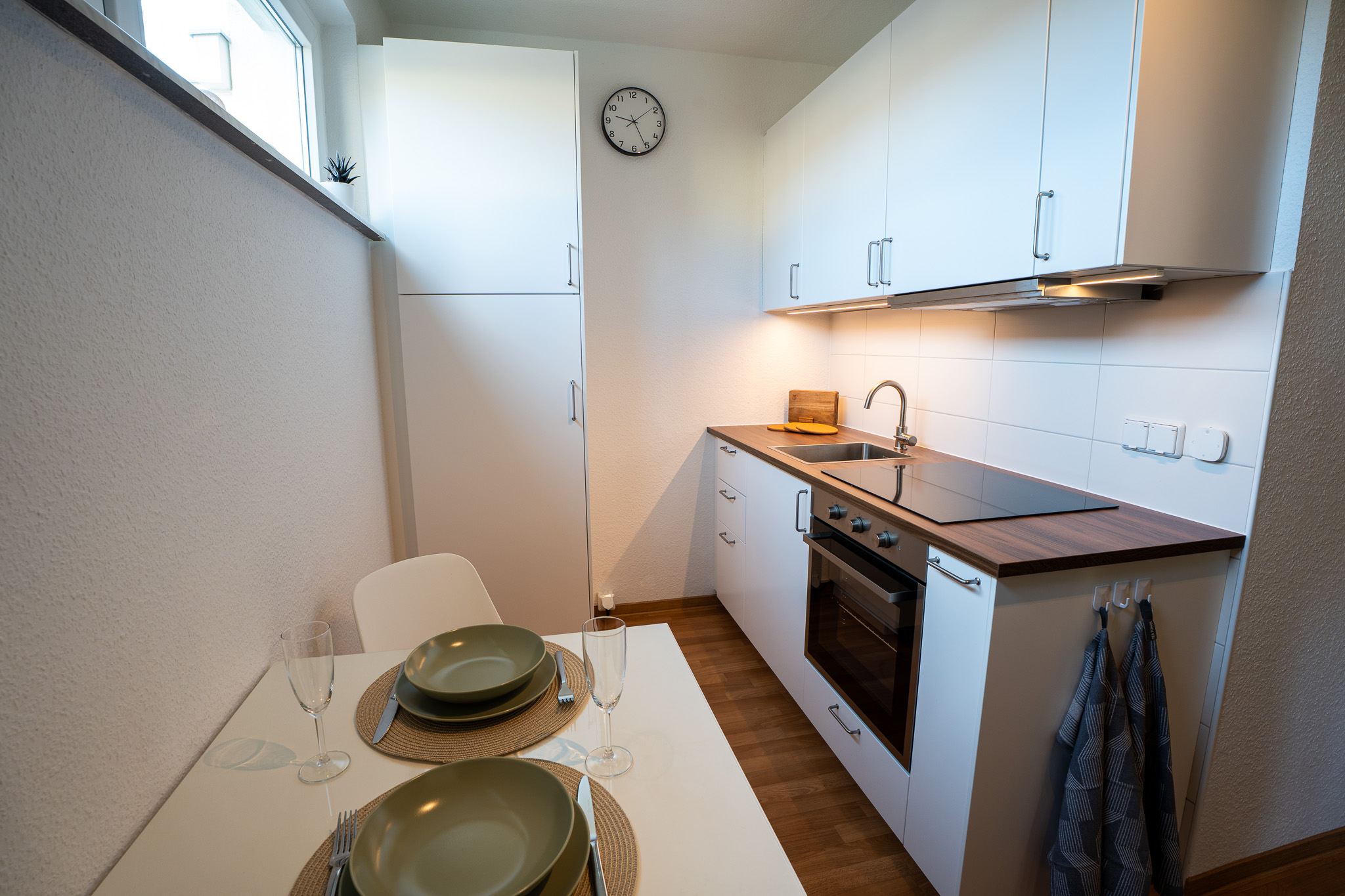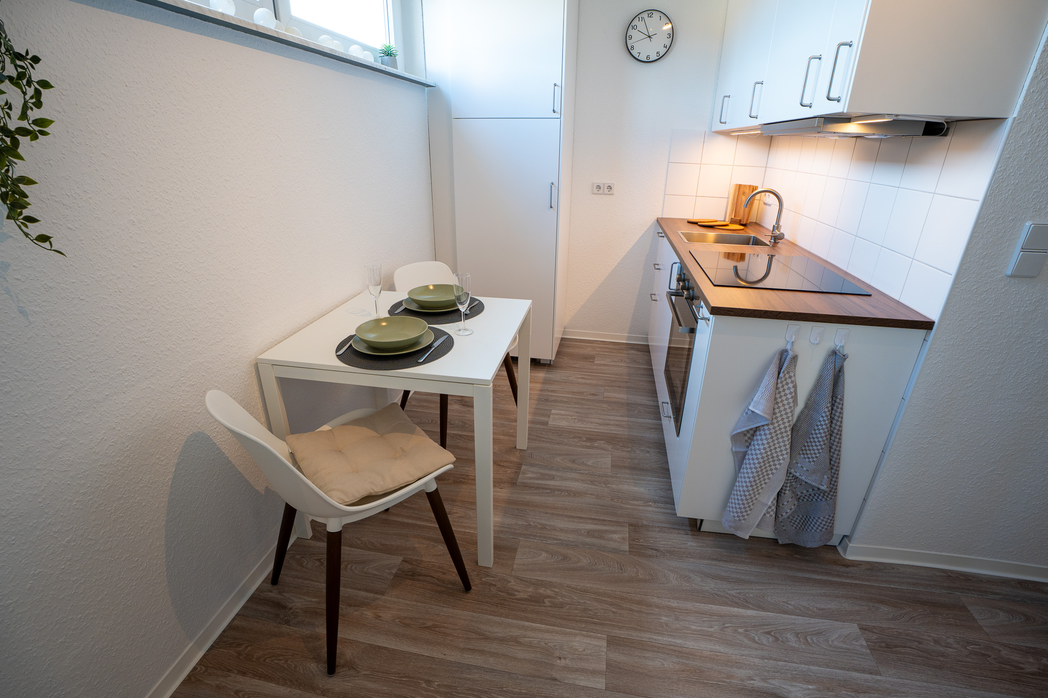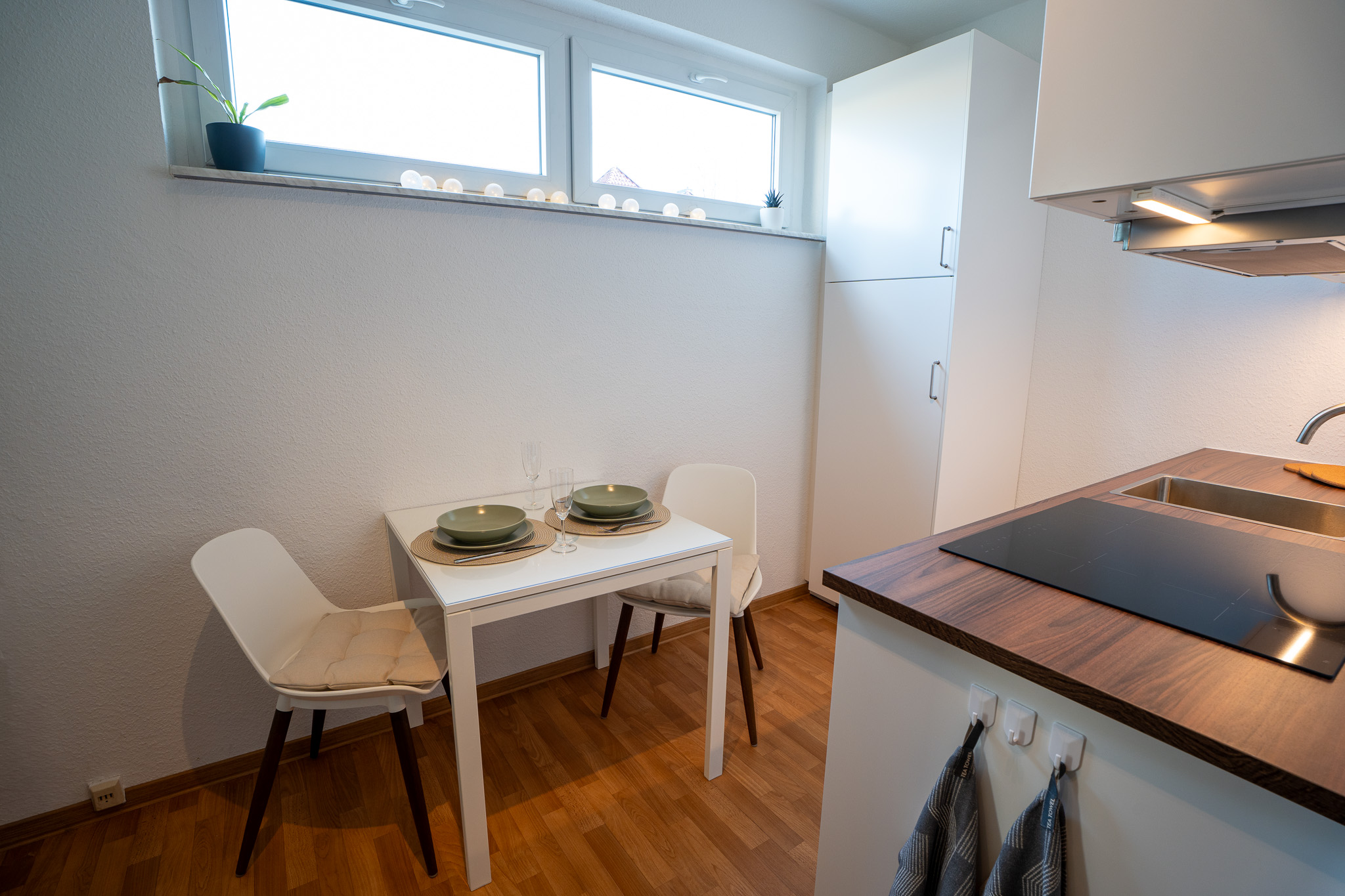 - Bettwäsche und ein Handtuch-Set sind bei Erstbezug der Wohnung inbegriffen.